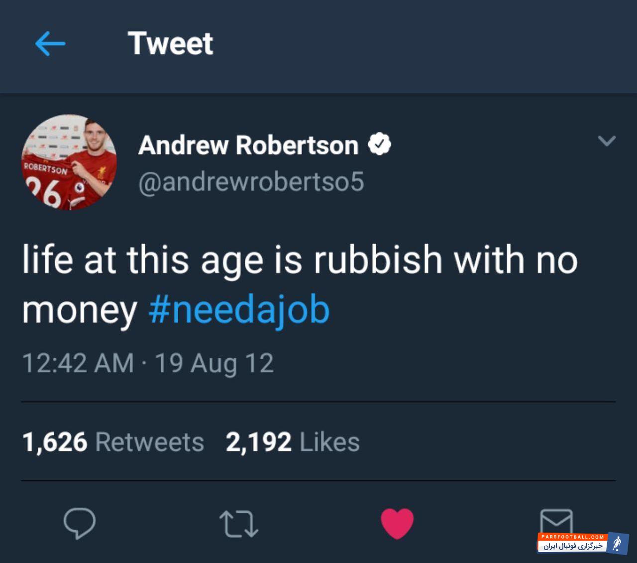 هواداران لیورپول پس از درخشش های او سراغ یکی از توئیت های قدیمی او رفته اند. او در سال ۲۰۱۲ در هیچ باشگاهی حضور نداشته و نیازمند پول بوده است. این که پس از ۵-۶ سال مدافع اسکاتلندی اکنون باید در فینال لیگ قهرمانان اروپا بازی کند، برای هواداران بسیار جالب بود.