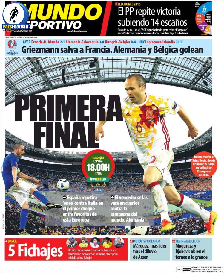 عناوین روزنامه ال موندو دپورتیوو اسپانیا ۷ تیر ۹۵