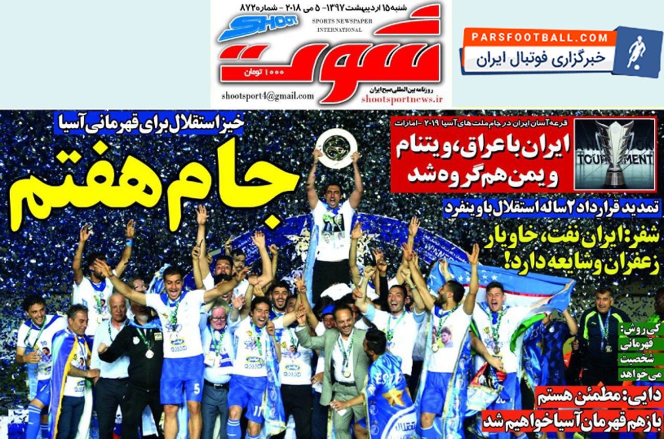 روزنامه شوت ، شنبه ۱۵ اردیبهشت ؛ خیز استقلال برای قهرمانی آسیا !