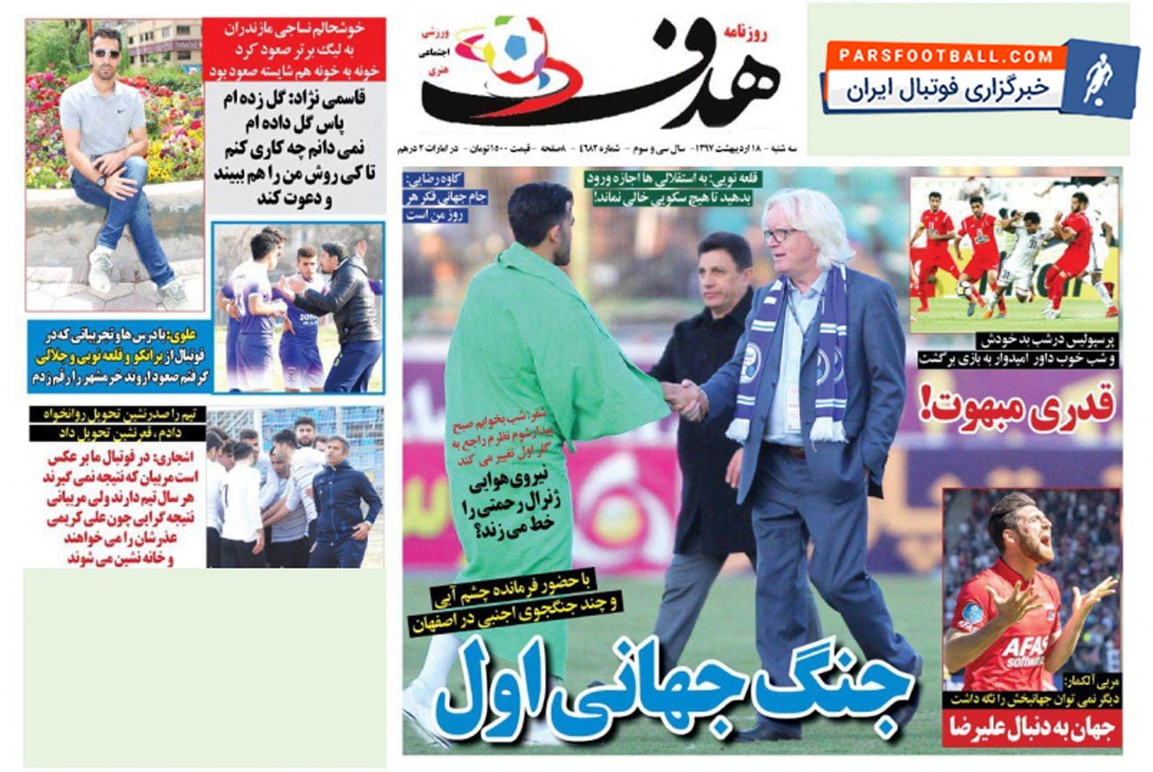 روزنامه هدف ورزشی ، سهشنبه ۱۸ اردیبهشت ؛ جنگ جهانی اول !