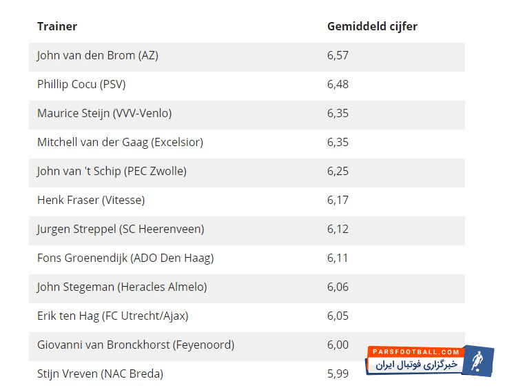 روزنامه بین المللی هلند با اتمام فصل ۲۰۱۷-۲۱۸ مربی برتر سال را انتخاب کرد که فان دن بروم ، سرمربی آلکمار با کسب ۶.۵۷ امتیاز به عنوان مربی سال انتخاب شد.
