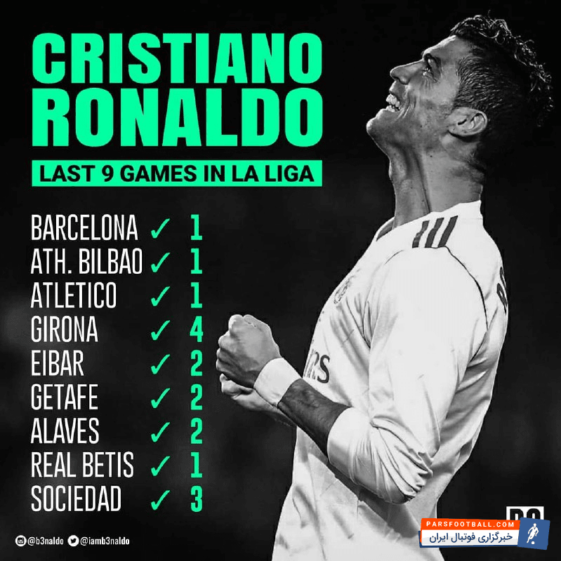 رونالدو در ۹ بازی آخر خود برای رئال در لالیگا گلزنی کرده است.
