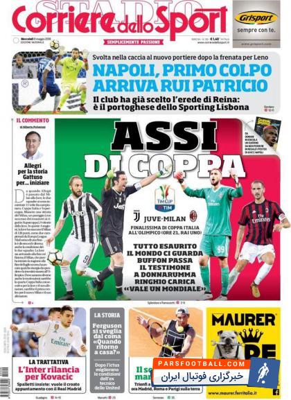 روزنامه کوریره دلو اسپورت ، چهارشنبه ۹ می ؛ برگ برندههای فینال ؛ یووه-میلان در المپیکو