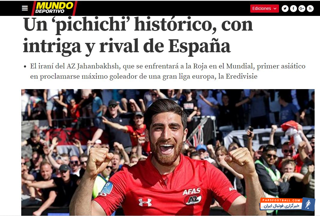 روزنامه موندو دپورتیوو اسپانیا گزارشی را درباره علیرضا جهانبخش ستاره ایرانی آلکمار نوشت و به تمجید از علیرضا پرداخت که موفق شده بود رکوردی بی نظیر را به نام خود ثبت کند و به اولین آسیایی تبدیل شود که به عنوان آقای گلی یک لیگ معتبر اروپایی از آن خود کرده است.
