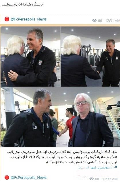 در همین حال کانال هواداری پرسپولیس در یکی از پیام رسان های داخلی نسبت به لیست انتخابی کارلوس کی روش چنین واکنش نشان داده است: