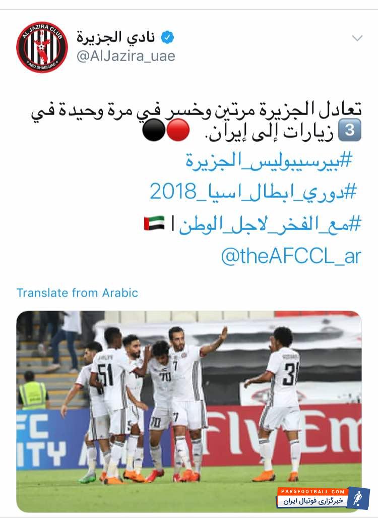 توئیتر باشگاه الجزیره امارات امید پرسپولیسیها برای صعود را بالا برد !
