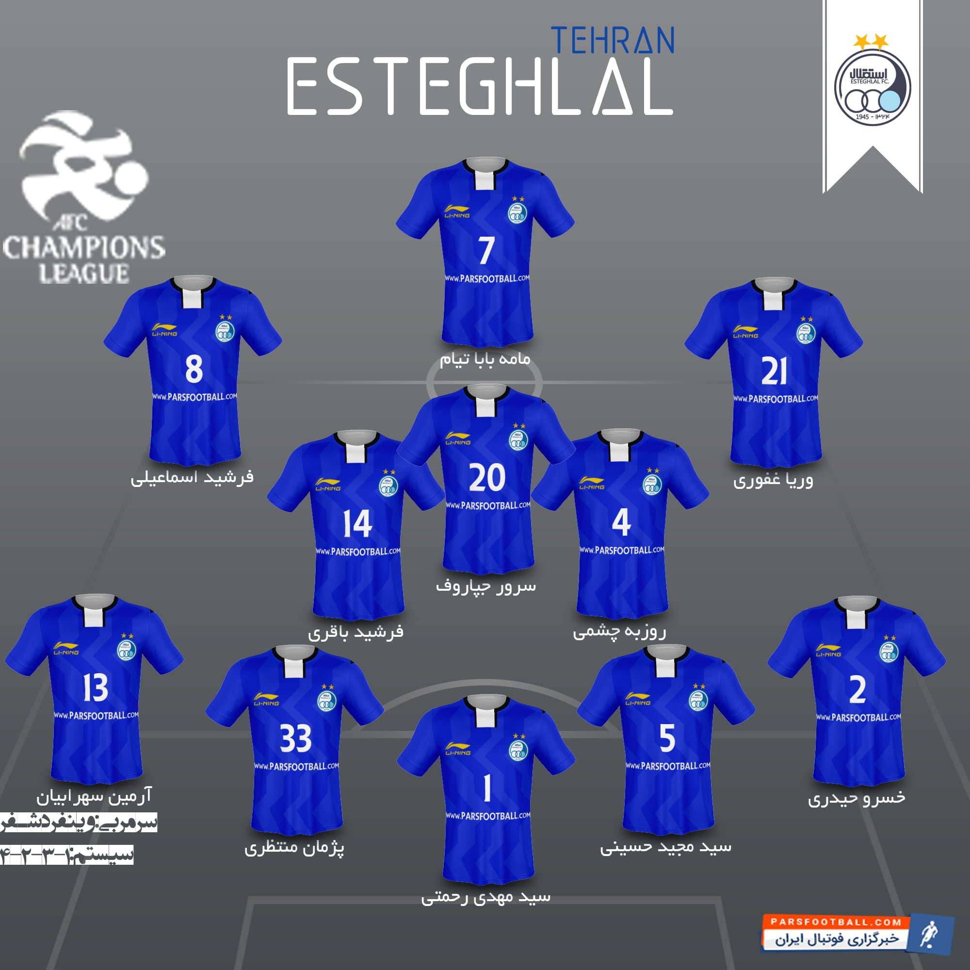 با تصمیم وینفرد شفر استقلال با ترکیب سید مهدی رحمتی، پژمان منتظری، مجید حسینی، وریا غفوری، آرمین سهرابیان، فرشید باقری، روزبه چشمی، خسرو حیدری، سرور جپارف، فرشید اسماعیلی و مامه تیام به میدان خواهد رفت.