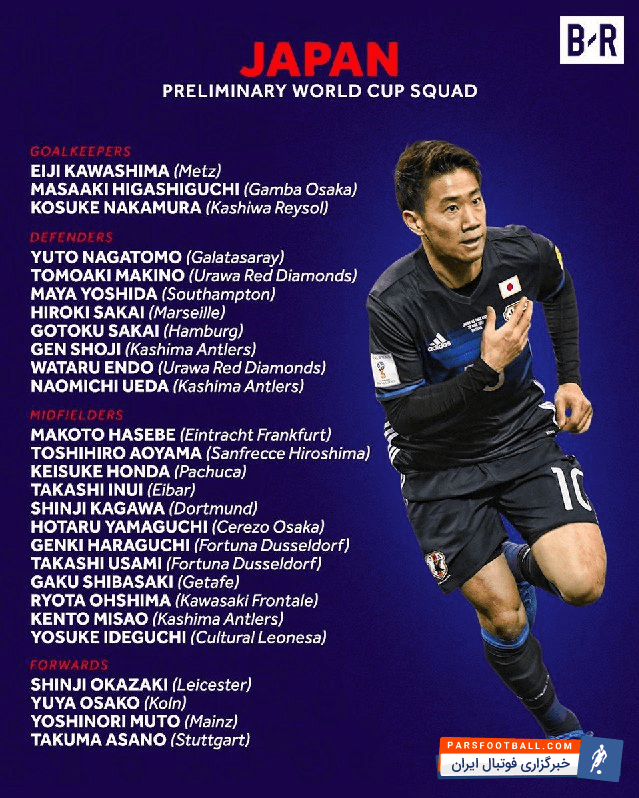 فدراسیون فوتبال ژاپن لیست اولیه بازیکنان تیم ملی این کشور برای جام جهانی ۲۰۱۸ روسیه را اعلام کرد.