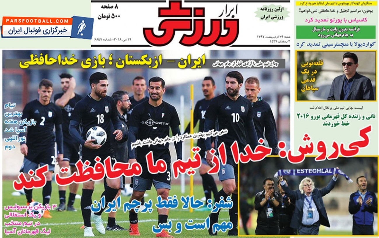 روزنامه ابرار ورزشی ، شنبه ۲۹ اردیبهشت ؛ کی روش : خدا از تیم ما محافظت کند !