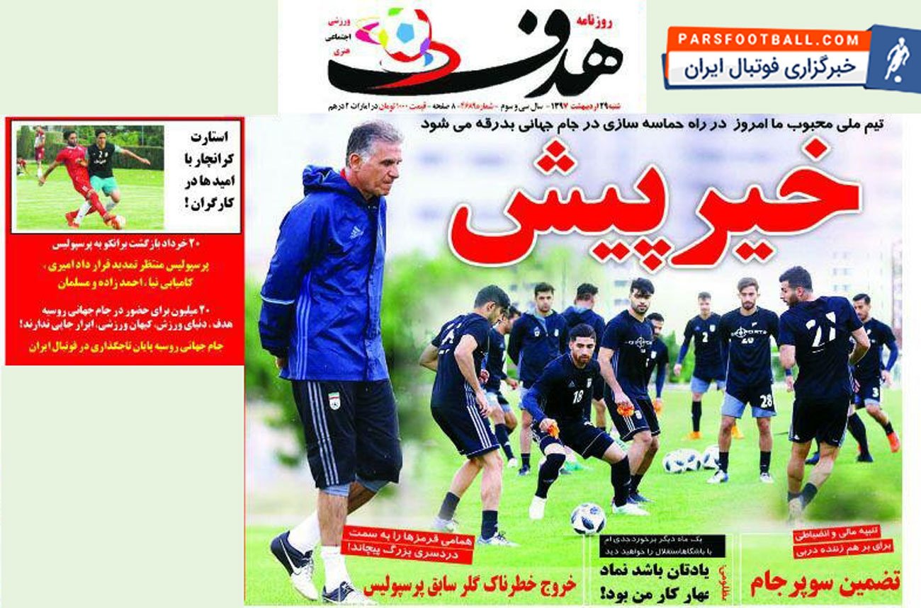 عناوین روزنامه هدف ورزشی روز شنبه ۲۹ اردیبهشت به شرح زیر است :