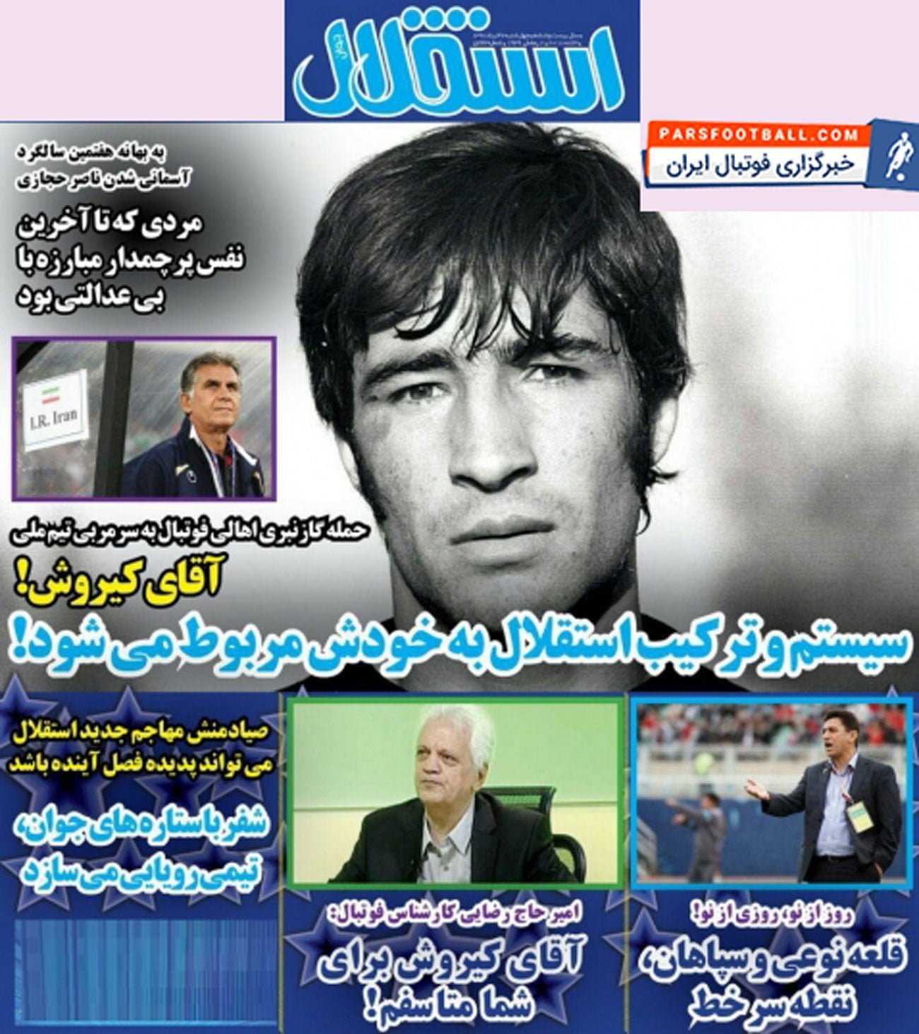 روزنامه استقلال جوان ، چهارشنبه ۲ خرداد ؛ آقای کی روش ، برای شما متاسفم !