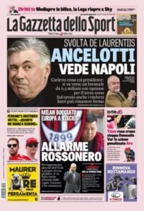 روزنامه گاتزتا دلو اسپورت ، چهارشنبه ۲۳ می ؛ ملاقات ناپولی با کارلتو !