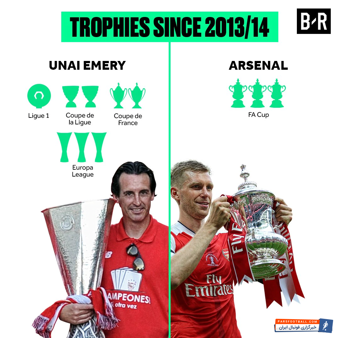 بر این اساس تعداد قهرمانی‌هایی که این سرمربی سابق پاری سن ژرمن بدست آورده است از سال ۱۴-۲۰۱۳ تاکنون بیش از دو برابر توپچی‌های لندن تحت هدایت ونگر بوده است.