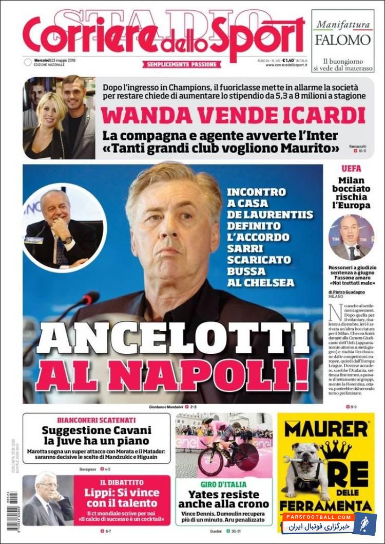 روزنامه کوریره دلو اسپورت ، چهارشنبه ۲۳ می ؛ آنچلوتی به ناپولی !