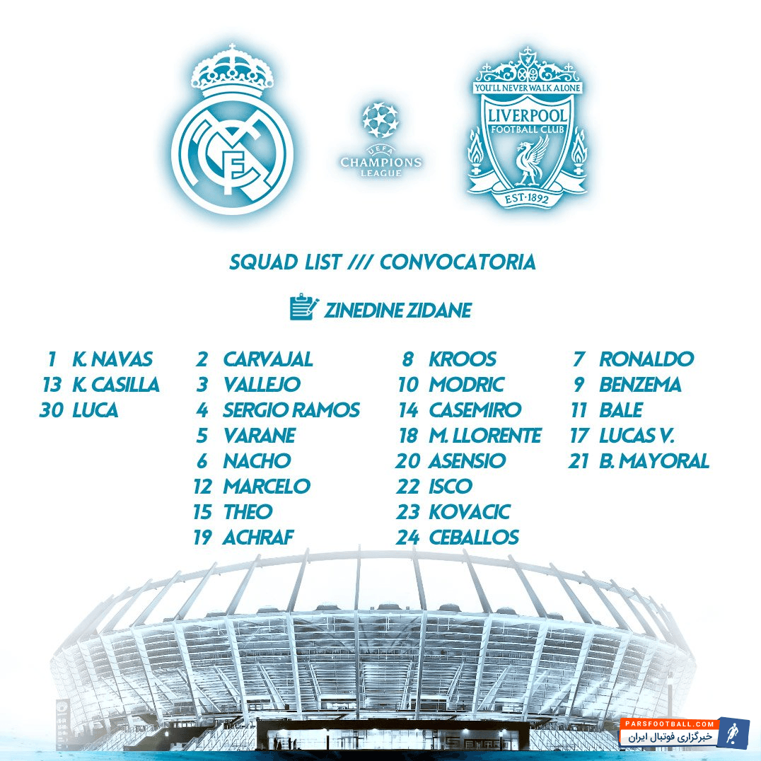 رئال مادرید و انتشار لیست بازیکنان برای حضور در فینال لیگ قهرمانان اروپا و رویارویی با لیورپول
