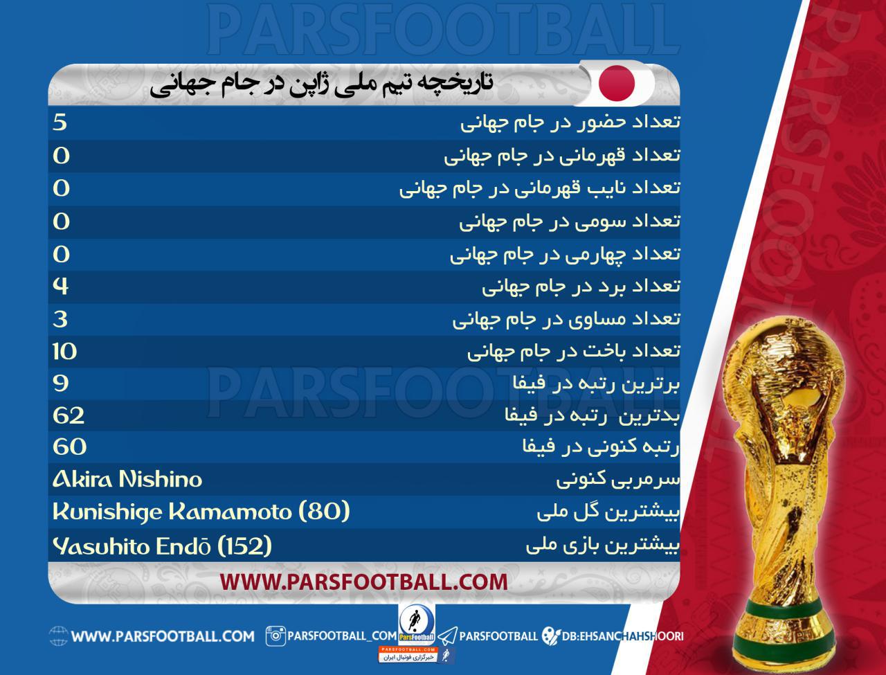 اینفوگرافی آمار و عملکرد تیم ملی فوتبال ژاپن در ادوار جام های جهانی