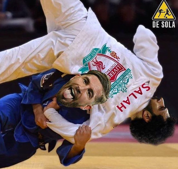 مصدومیت صلاح و خطای راموس روی او که از نظرداور خطا نبود ، به فنی در جودو تشبیه و سوژه کاربران فضای مجازی شده است.