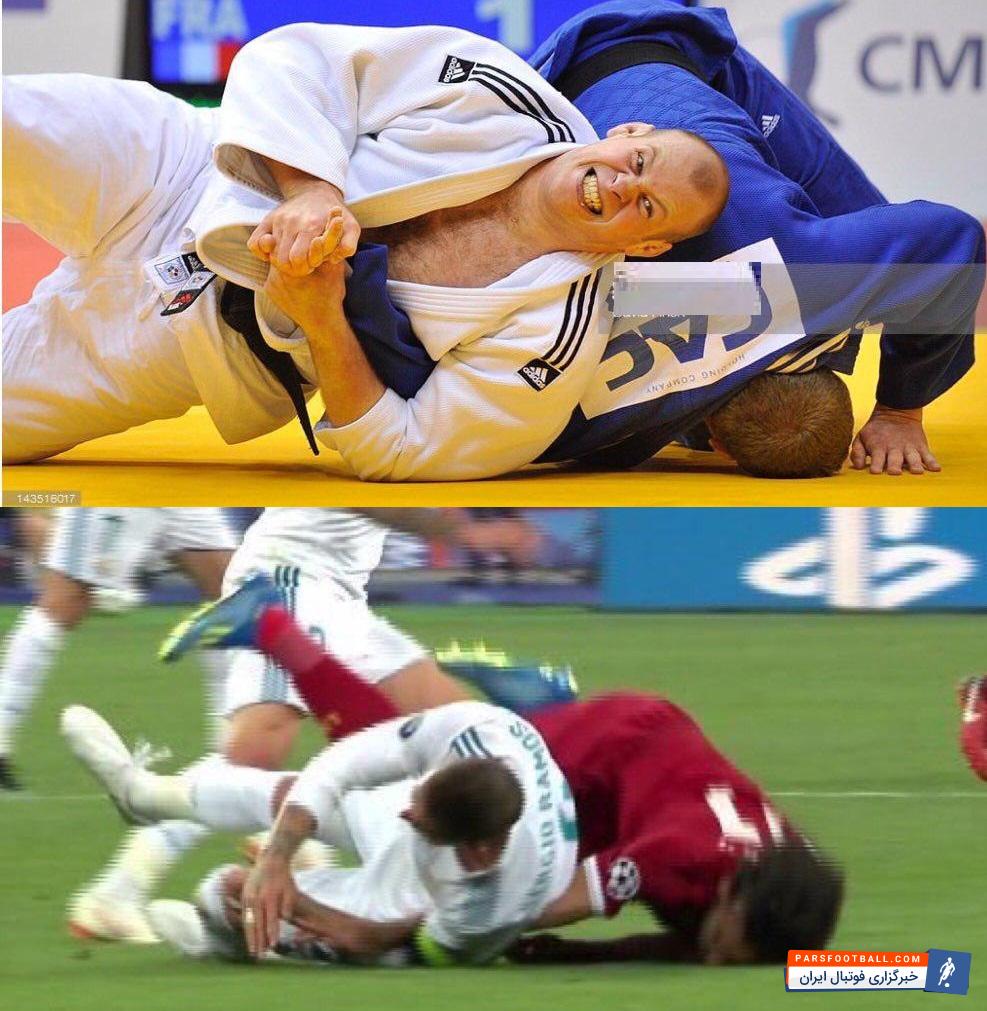 من بازی را کامل دیدم و از نظر من هم خطای راموس روی صلاح شبیه فنون جودو بود. شاید بیشتر بتوانیم این حرکت را به فن «کانست» در جودو تشبیه کنیم. یک دست گرو گرفته می شود و حریف به سمت شانه دیگر به زمین کوبیده می شود.