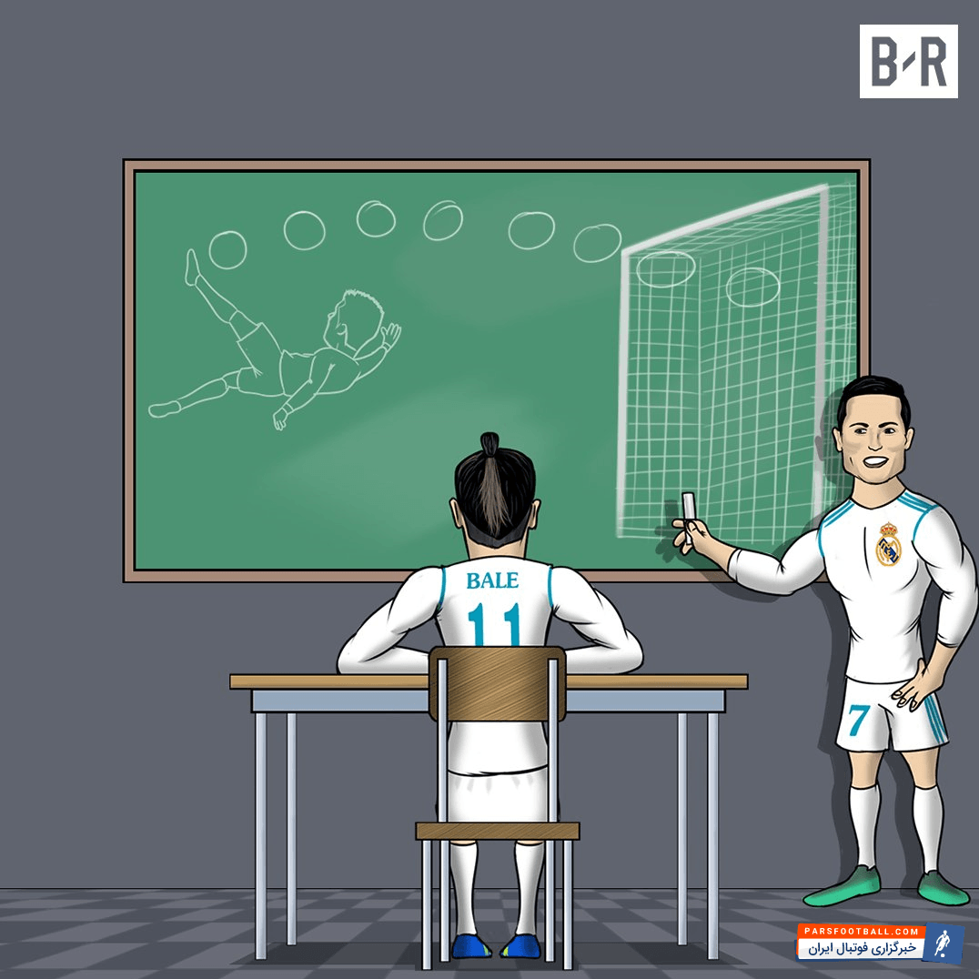 عکس ؛ کاریکاتور ؛ کلاس درس “چگونه قیچی برگردان بزنیم” رونالدو برای گرت بیل !