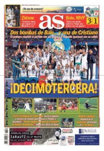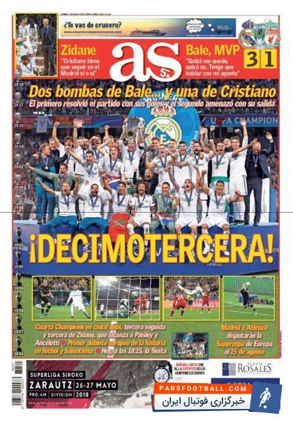 روزنامه آس اسپانیا ، یکشنبه ۲۷ می ؛ دو بمب؛ یکی از بیل و دیگری از رونالدو !