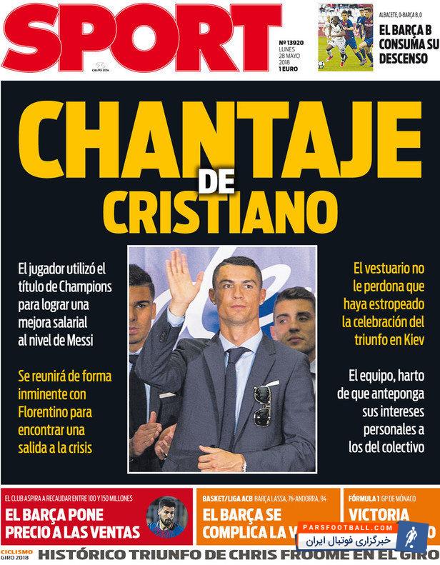 روزنامه اسپورت اسپانیا ، دوشنبه ۲۸ می ؛ باج خواهی کریستیانو !