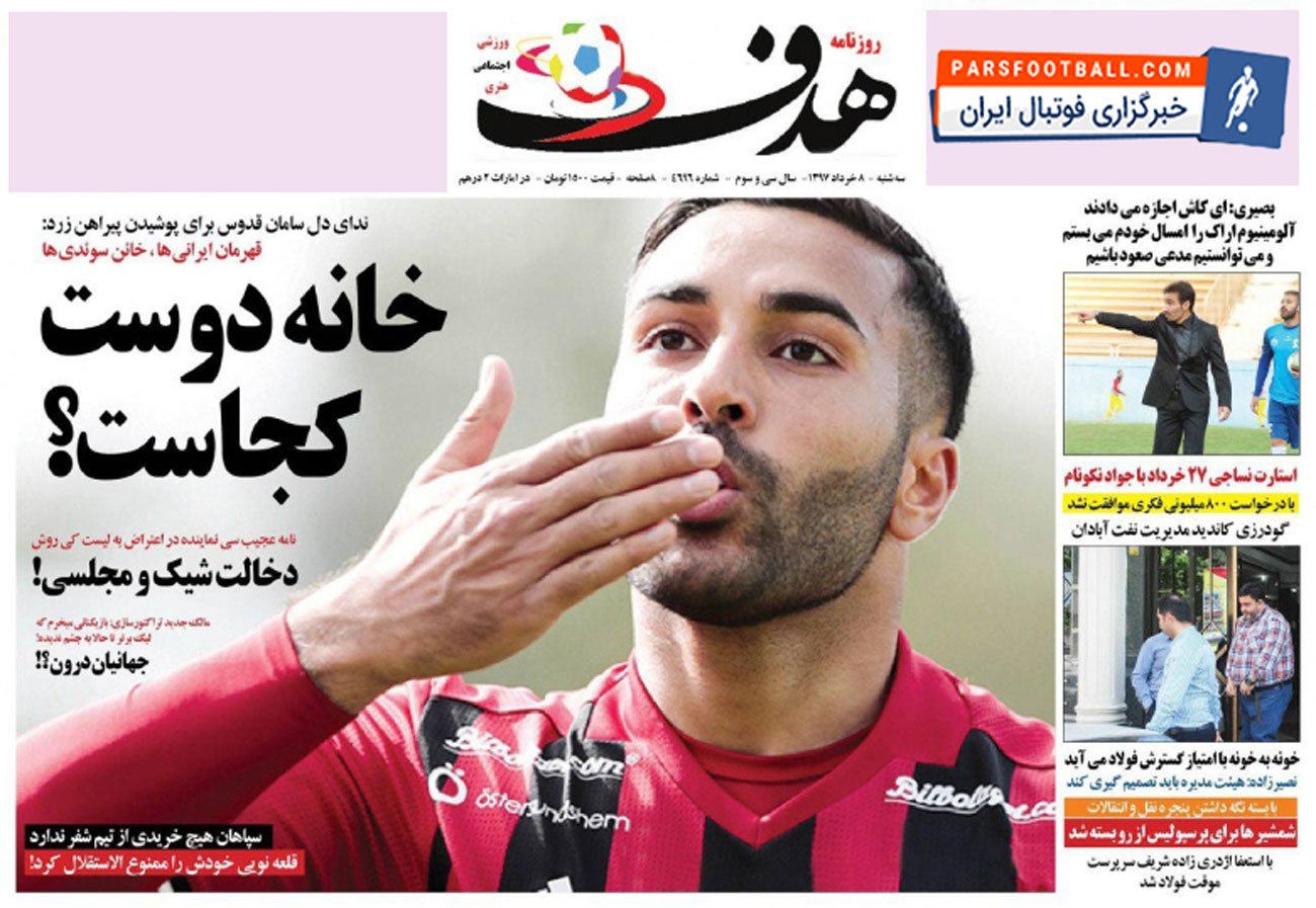 روزنامه هدف ورزشی ، سه‌شنبه ۸ خرداد ؛ قلعه نویی خودش را ممنوع الاستقلال کرد !