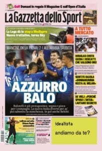 روزنامه گاتزتا دلو اسپورت ، سهشنبه ۲۹ می ؛ بالوی آتزوری !