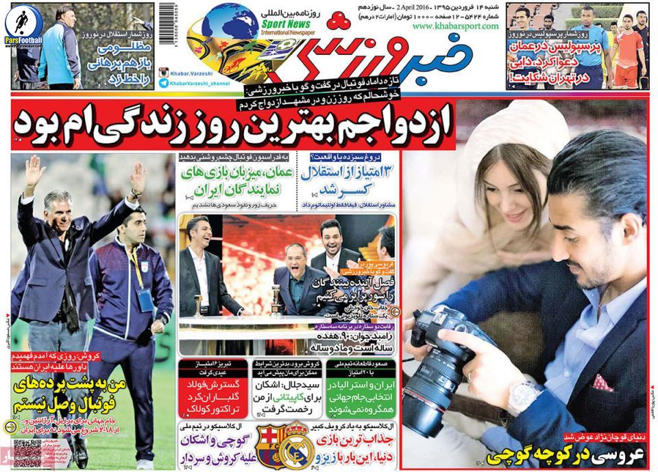 نگاهی داریم بر نیم صفحه نخست روزنامه خبرورزشی، شنبه ۱۴ فروردین.