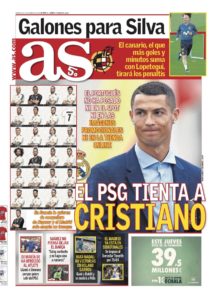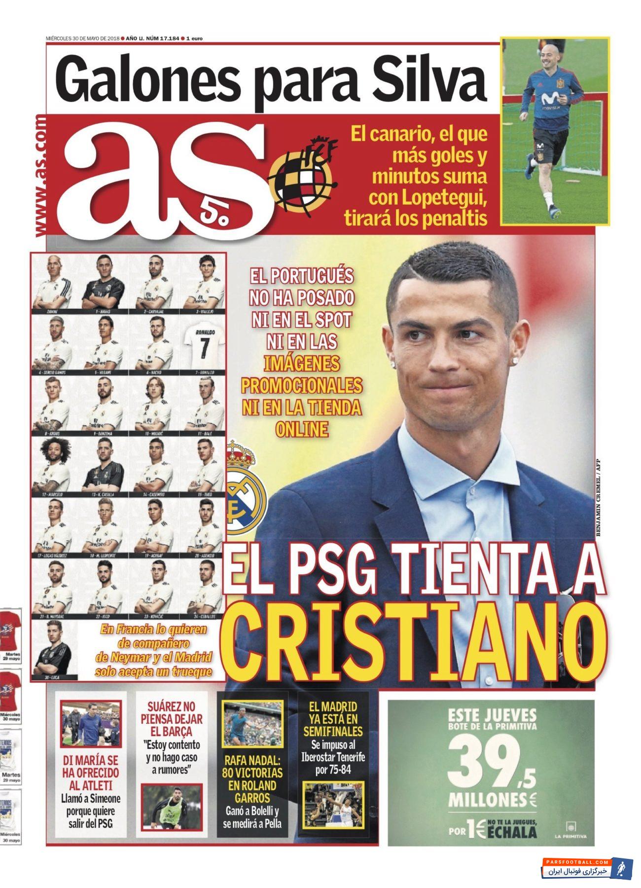 روزنامه آس اسپانیا ، چهارشنبه ۳۰ می ؛ پاری سن ژرمن به دنبال رونالدو !