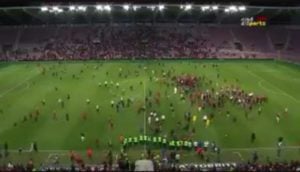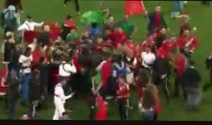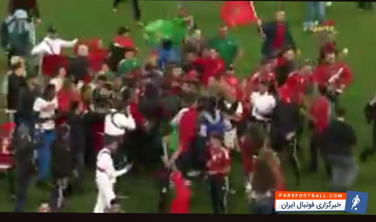 هجوم هواداران مراکشی به داخل زمین پس از پایان بازی با اکراین