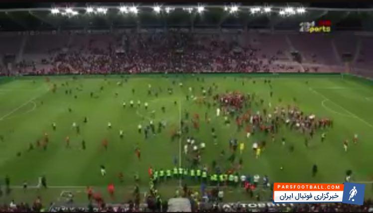 هواداران تیم ملی مراکش پس از دیدار تیم کشورشان به زمین چمن یورش بردند.