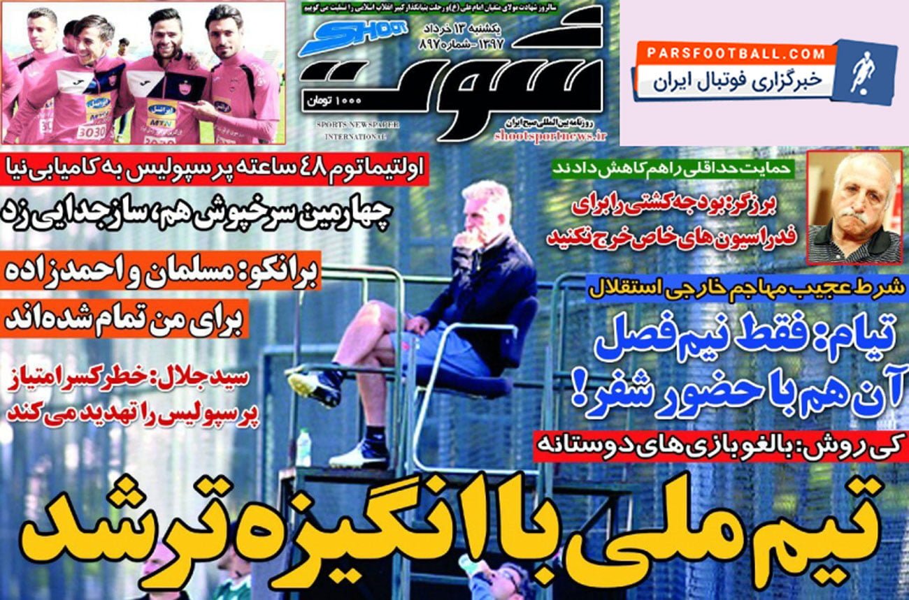 عناوین روزنامه شوت روز یکشنبه ۱۳ خرداد به شرح زیر است :