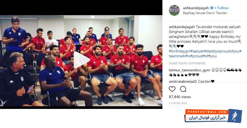 اشکان دژاگه و بازیکنان تیم ملی شعر تولدت مبارک را برای دختر دژاگه خواندند