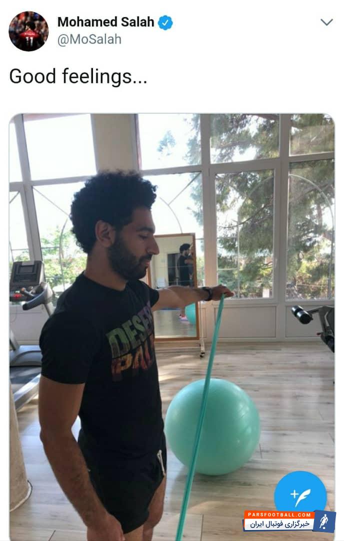 صلاح امروز با انتشار تصویری از تمرینات آماده سازی خود برای جام جهانی روسیه، از احساس خوب خود در فاصله حدود ۱۰ روز مانده به آغاز مسابقات خبر داد تا هواداران تیم ملی مصر بیش از همیشه به بازگشت امید اول خود در جام جهانی امیدوار باشند.