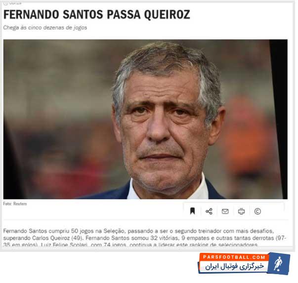 سرمربی تیم ملی فوتبال پرتغال رکورد حضور سرمربی تیم ملی ایران در این تیم را شکست.