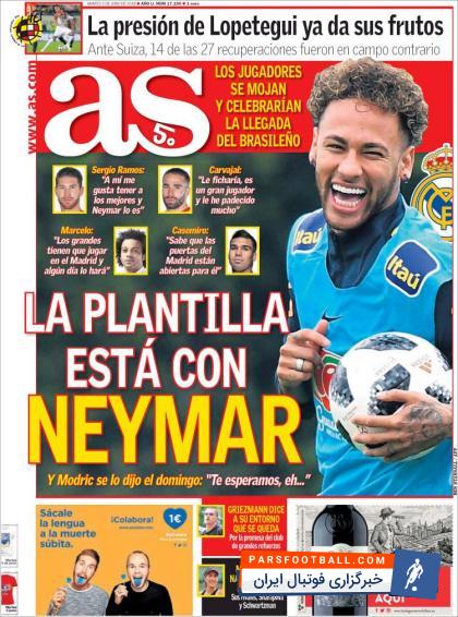 روزنامه آس اسپانیا ، سهشنبه ۵ ژوئن ؛ این تیم با نیمار !