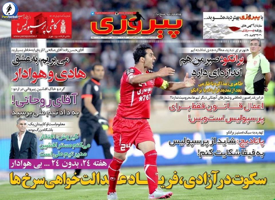روزنامه پیروزی ۱۵ فروردین | اعمال قانون فقط برای پرسپولیس است و بس! | صبر من هم اندازهای دارد | شاید از پرسپولیس شکایت کنم
