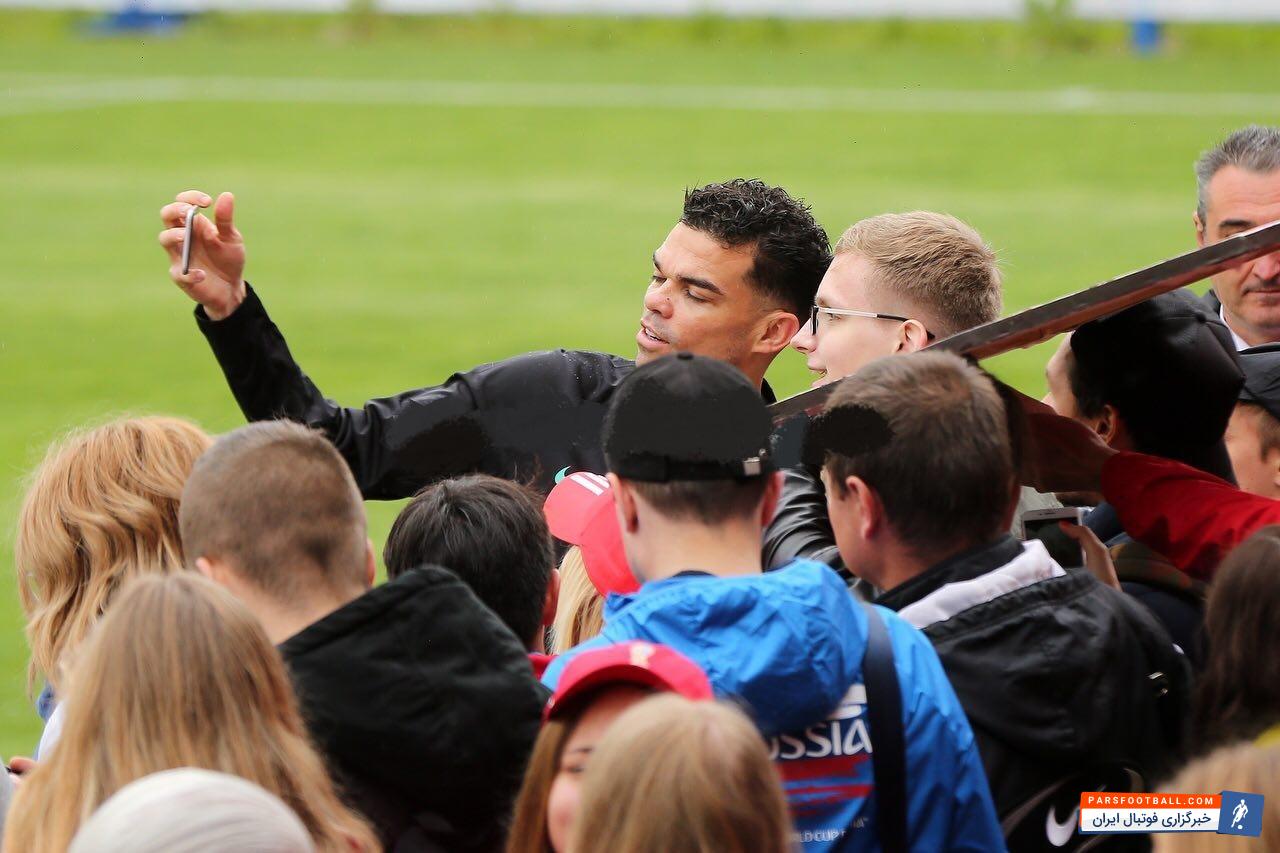 بازیکنان تیم ملی پرتغال امروز با حضور در کمپ ساترن اولین تمرین خود را در مسکو برگزار کردند. پرتغالی ها در جریان این تمرین، هواداران بسیاری را نیز در کنار خود می دیدند و به همین دلیل با پایان یافتن پارت اول تمرین خودبه سراغ آنها رفتند و به ابراز احساسات آنها پاسخ دادند. یکی از بازیکنانی که مورد استقبال هواداران حاضر در کمپ قرار گرفت مدافع باتجربه پرتغالی ها یعنی په په بود و اتفاقا این بازیکن بداخلاق (در زمین) با خوش اخلاقی فراوانی در کنار بسیاری از هواداران ایستاد و در تقدیم امضا و انداختن عکس یادگاری با آنها همکاری لازم را به جا آورد.