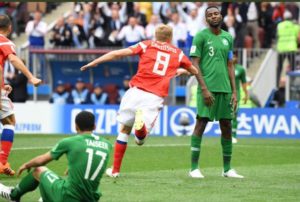 هافبک شماره هشت تیم ملی روسیه نخستین گل جام جهانی ۲۰۱۸ را به ثمر رساند.