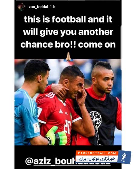 زهیو فضال مدافع مراکشی تیم رئال بتیس با انتشار متنی در اینستاگرام خود سعی کرد تا به بوهدوز مهاجم ناکام تیم ملی کشورش امید بدهد و او را از فکر اتفاقی که امروز افتاد بیرون بیاورد.