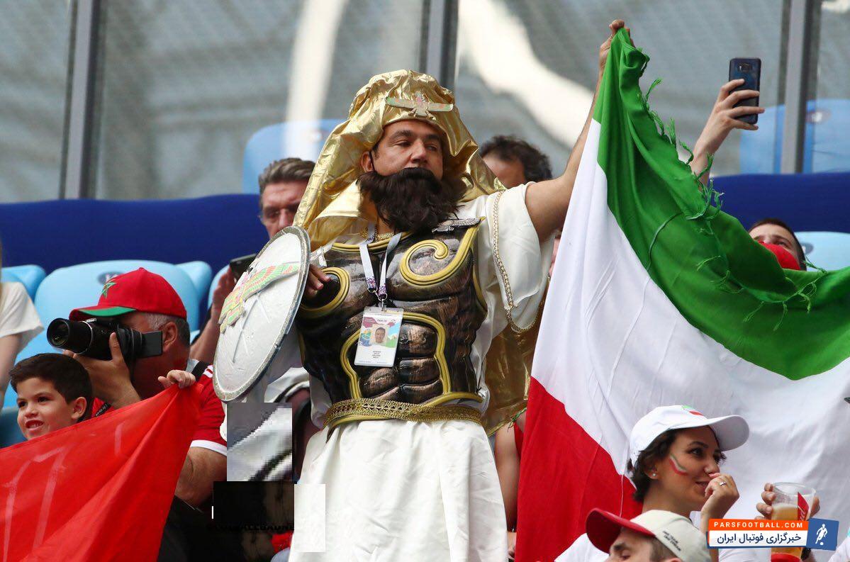 ددر بین سیل عظیم هواداران تیم ملـی ایران، پوشش یک ایرانی که همچون داریوش، کوروش و یا دیگر شخصیت های دوره ی هخامنشی بود، تعجب همگان را برانگیخت که در ادامه تصویری از او را مشاهده می کنید: