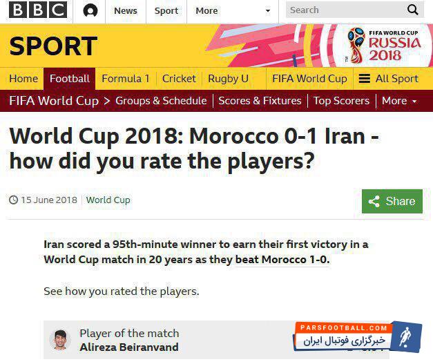 سایت بی بی سی اسپورت شب گذشته در نظر سنجی از کاربران خود در مورد بهترین بازیکن بازی ایران- مراکش سوال کرد که در این بین علیرضا بیرانوند بیشترین آراء مردم را به خود اختصاص داد.