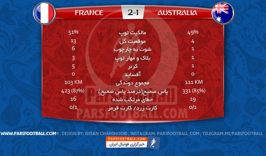 اینفوگرافی آمار پایان بازی تیم های فرانسه و استرالیا در بازی های جام جهانی 2018