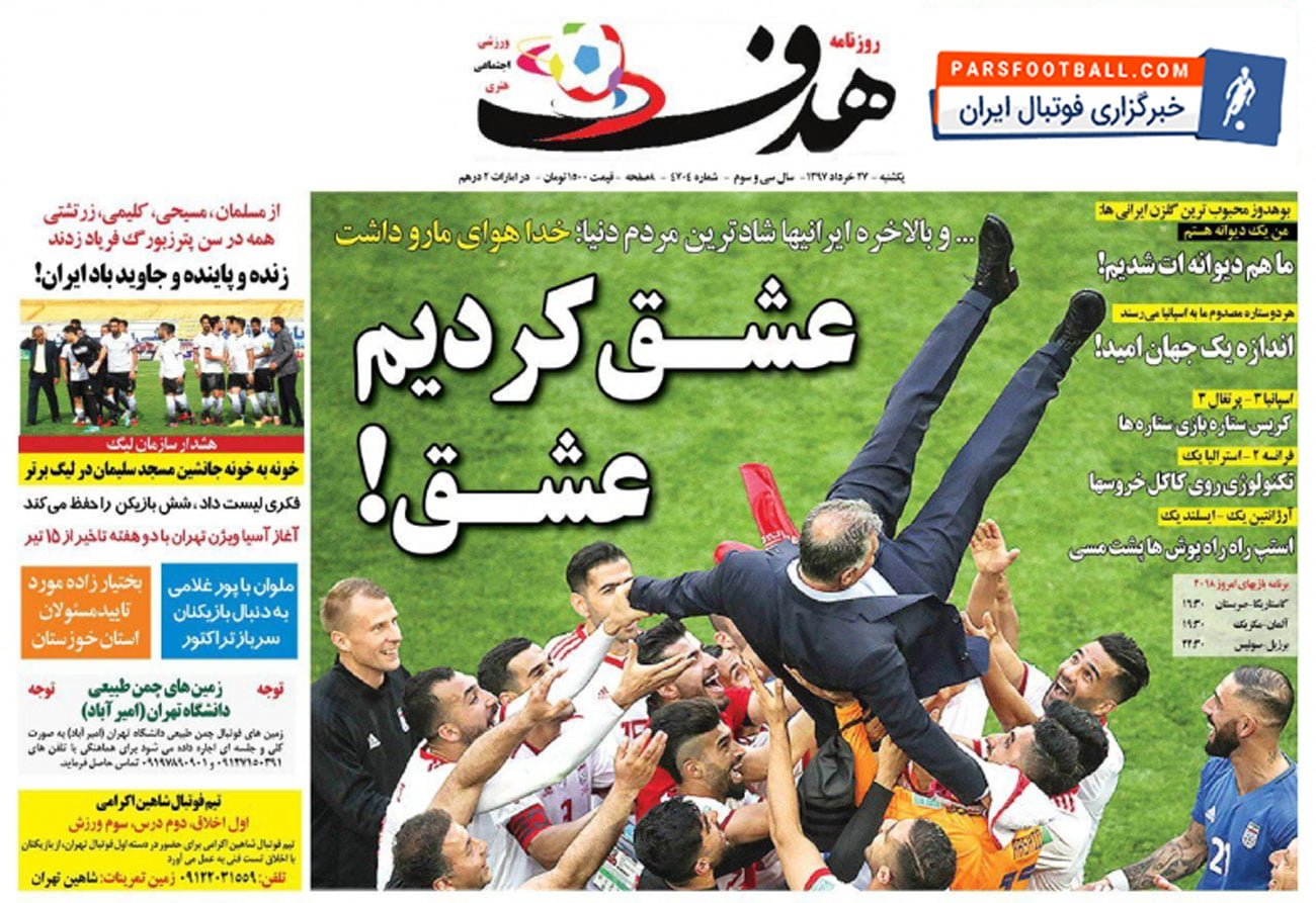 روزنامه هدف ورزشی ، یکشنبه ۲۷ خرداد ؛ عشق کردیم ، عشق !