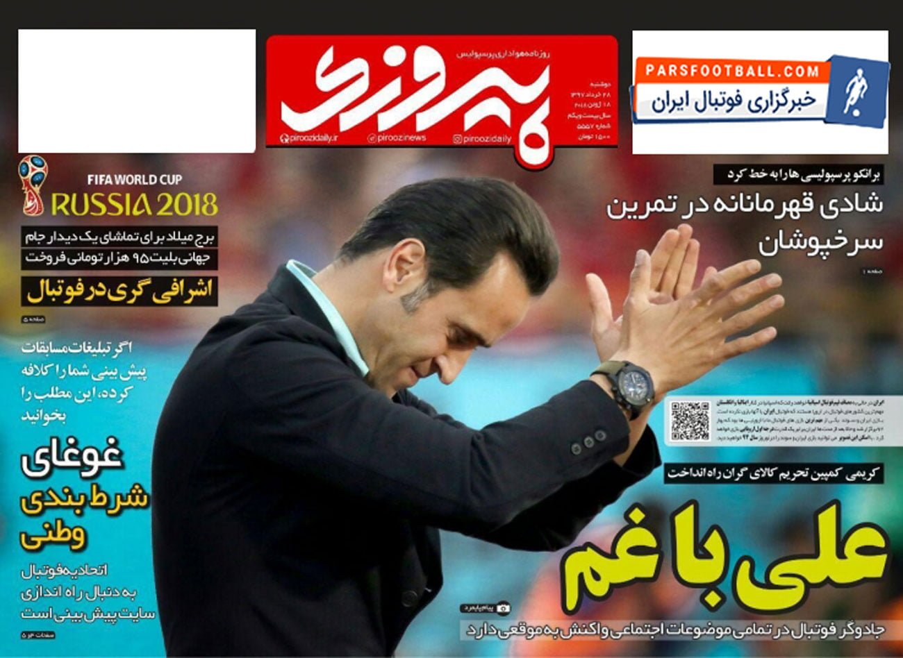 روزنامه پیروزی ، دوشنبه ۲۸ خرداد ؛ شادی قهرمانانه در تمرین سرخپوشان !