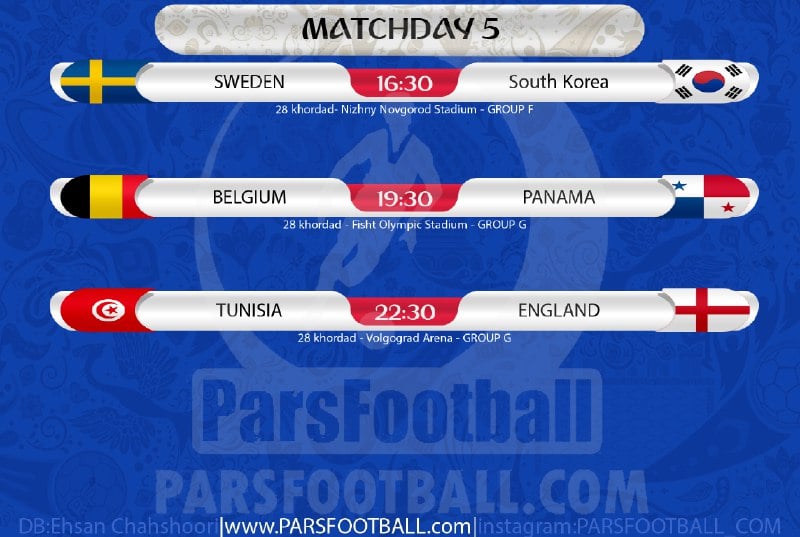 اینفوگرافی برنامه بازی های روز پنجم جام جهانی 2018 روسیه