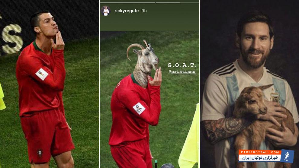 او عکس وسطی را در استوری اش قرارداد که به جای رونالدو، سر یک بز قرار گرفته است. کلمه «Goat» به انگلیسی، هم به معنای بز و هم به معنای بهترین تاریخ است و اما ربط این موضوع به مسی چیست؟