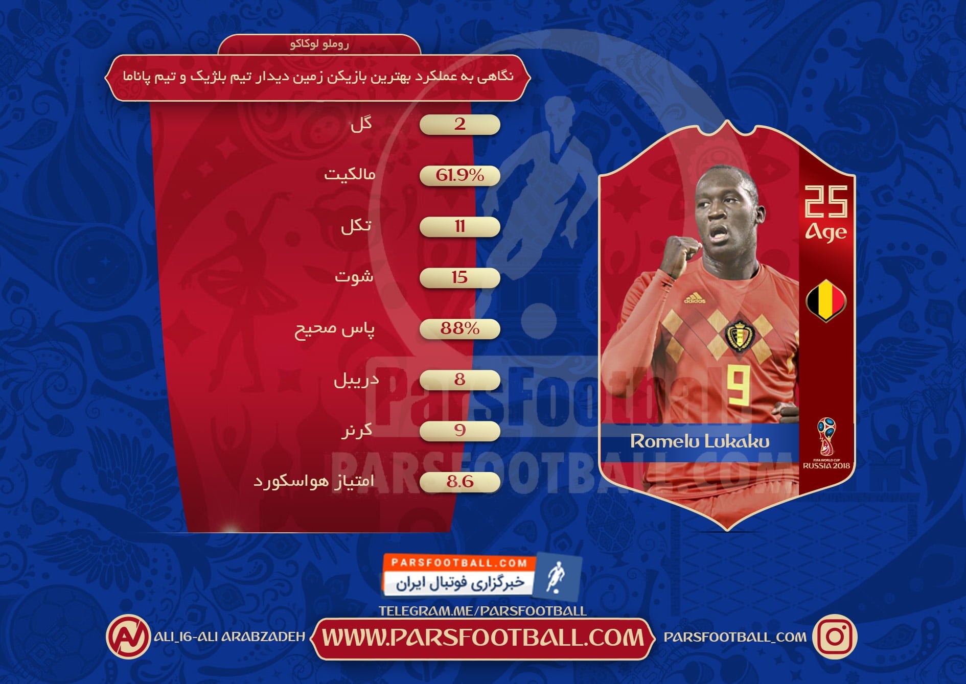 اینفوگرافی روملو لوکاکو بهترین بازیکن دیدار بلژیک و پاناما