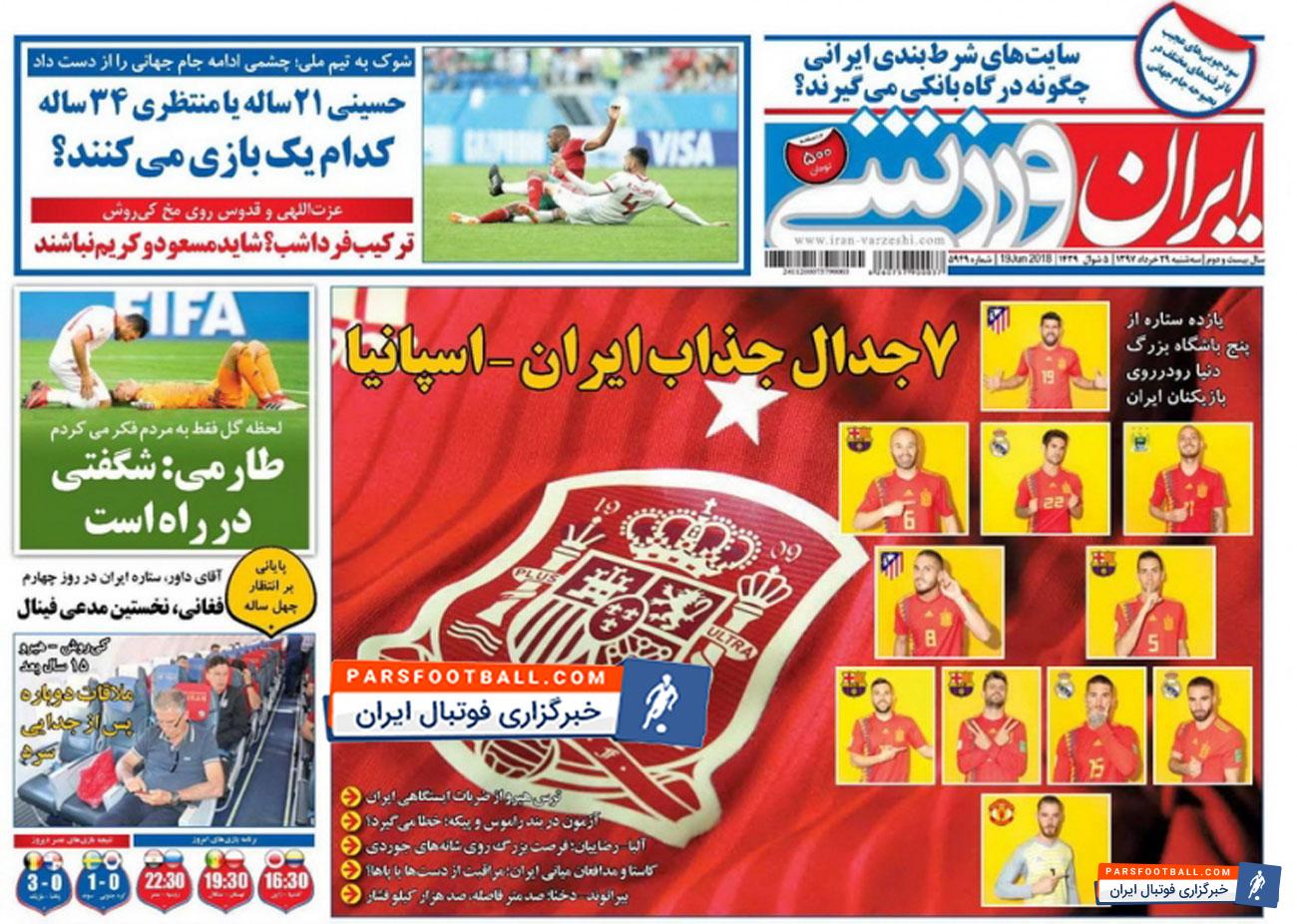 عناوین روزنامه ایران ورزشی روز سهشنبه ۲۹ خرداد به شرح زیر است :