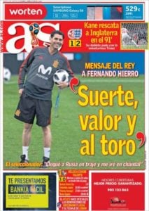 روزنامه آس اسپانیا ، سه‌شنبه ۱۹ ژوئن ؛ پیام پادشاه برای هیرو : شانس، جرئت برای گاوهای نر !